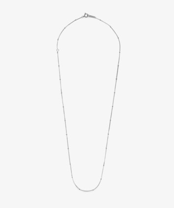 シンプルながらもデコルテにニュアンスを与えてくれるチェーンネックレス。等間隔にあしらわれたホワイトゴールドのパーツがこなれた印象を与え、さりげなくアクセントをプラス。お持ちのトップやチャームと合わせたり、素肌になじむように単品で着けたり、気分や装いに合わせて自由なアレンジをお楽しみいただけます。■長さの調節ができるアジャスターはこちら※全国のフェスタリア系列店舗にてクリーニングやアフターメンテナンスを承ります。#チェーンネックレス #ネックレス 45cm #地金ジュエリー