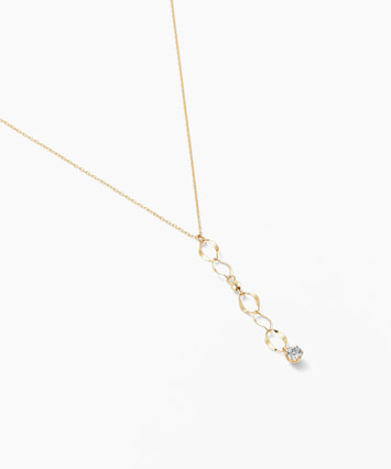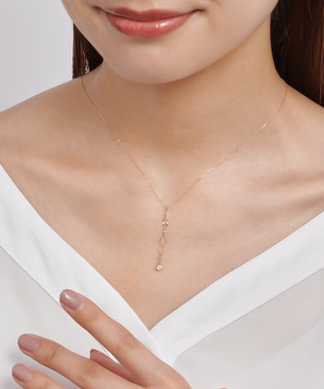クリアで華やかな輝きと優れた耐久性をあわせ持つ合成石、モアサナイト。きらめきを引き立てる1粒デザインと、揺れる度にきらめくデザインチェーンがあいまって、デコルテを印象的に彩ります。Y字のフォルムがデコルテや首まわりをすっきりと見せてくれるのも魅力的。モダンな佇まいで、装いをクラスアップしてくれるネックレスです。■モアサナイトとは:モアサナイトは1893年アメリカで、宇宙から飛来した隕石の中から発見されました。ダイヤモンドのようにブリリアンス(白い強い輝き)やファイヤ(虹色のきらめき)を伴って輝く鉱物で、その輝きの強さはダイヤモンドの2.5倍ともいわれます。天然モアサナイトが地球上で産出されることは非常に稀ですが、化学組織・結晶構造を再現した合成モアサナイトの登場により、身近な存在となりました。ダイヤモンドよりも皮脂や汚れが付着しにくいため曇りにくく、宝石の中ではダイヤモンドに次ぐ硬さもあるため、日常使いしやすいことも魅力の一つです。■同シリーズのアイテムはこちら■長さの調節ができるアジャスターはこちら※全国のフェスタリア系列店舗にてクリーニングやアフターメンテナンスを承ります。
