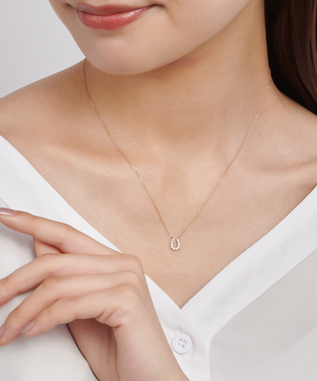 クリアで華やかな輝きと優れた耐久性をあわせ持つ合成石、モアサナイト。シンプルで洗練されたフォルムが輝きを引き立て、デコルテを明るく彩ります。流行や年代を問わない馬蹄のデザインは長く愛用できるのも魅力的。どんな装いにも合うデザインは日々に寄り添い、どんなシーンでも活躍してくれます。■モアサナイトとは:モアサナイトは1893年アメリカで、宇宙から飛来した隕石の中から発見されました。ダイヤモンドのようにブリリアンス(白い強い輝き)やファイヤ(虹色のきらめき)を伴って輝く鉱物で、その輝きの強さはダイヤモンドの2.5倍ともいわれます。天然モアサナイトが地球上で産出されることは非常に稀ですが、化学組織・結晶構造を再現した合成モアサナイトの登場により、身近な存在となりました。ダイヤモンドよりも皮脂や汚れが付着しにくいため曇りにくく、宝石の中ではダイヤモンドに次ぐ硬さもあるため、日常使いしやすいことも魅力の一つです。■同シリーズのアイテムはこちら■長さの調節ができるアジャスターはこちら※全国のフェスタリア系列店舗にてクリーニングやアフターメンテナンスを承ります。#馬蹄モチーフ #馬蹄モチーフ ネックレス #モアサナイト ジュエリー #3万円予算 ネックレス #ネックレス K10イエローゴールド