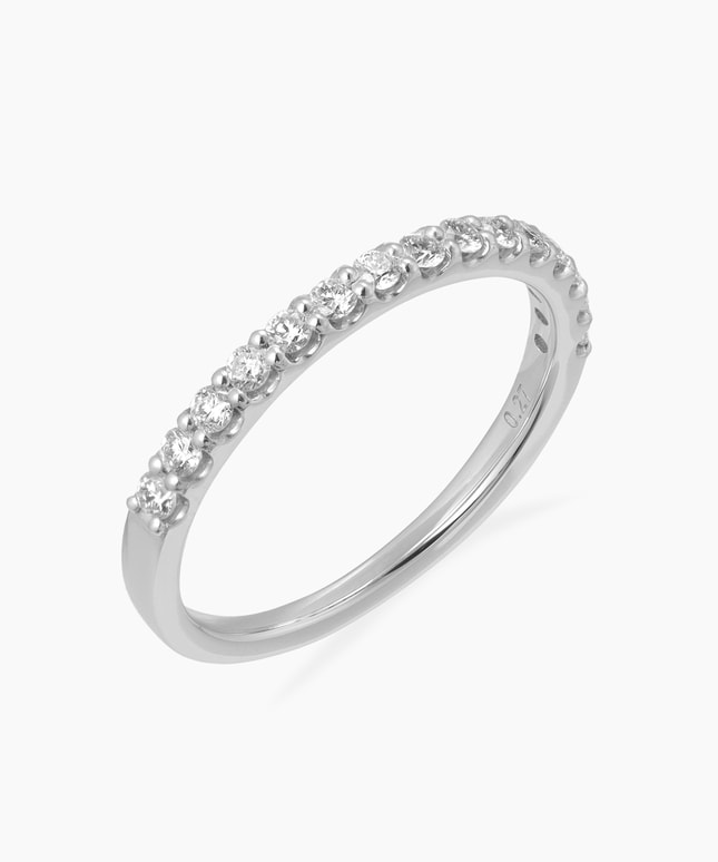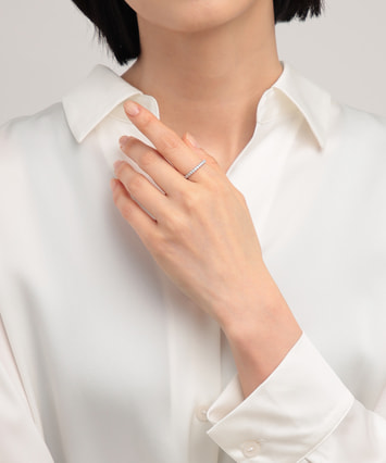 永遠のベーシックデザインとして人気のハーフエタニティリング。ダイヤモンドの存在感を際立たせるためのセッティングやバランスが、あらゆる角度からきらめきを引き立たせ豊かな表情を生み出します。地金部分は裏抜きをしないことで、指に馴染むなめらかな着け心地を実現。計算された幅や厚みのバランスは変形にも強く、長く愛用できる仕立てに。洗練されたフォルムは、他のリングとの重ねづけも相性抜群です。ダイヤモンドはHカラー、SIクラスのクラリティ、Goodカット以上の品質の中から厳選したもののみを使用。さらにその輝きを最大限に引き立たせる極小の爪にこだわり、究極のベーシックデザインだからこそ輝きの美しさを追及しました。一切の妥協を許さないその仕上がりと品質は、年齢やオケージョンを問わず時を超えて愛せる逸品です。■同デザインの7~14号はこちら■同シリーズのアイテムはこちら、