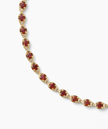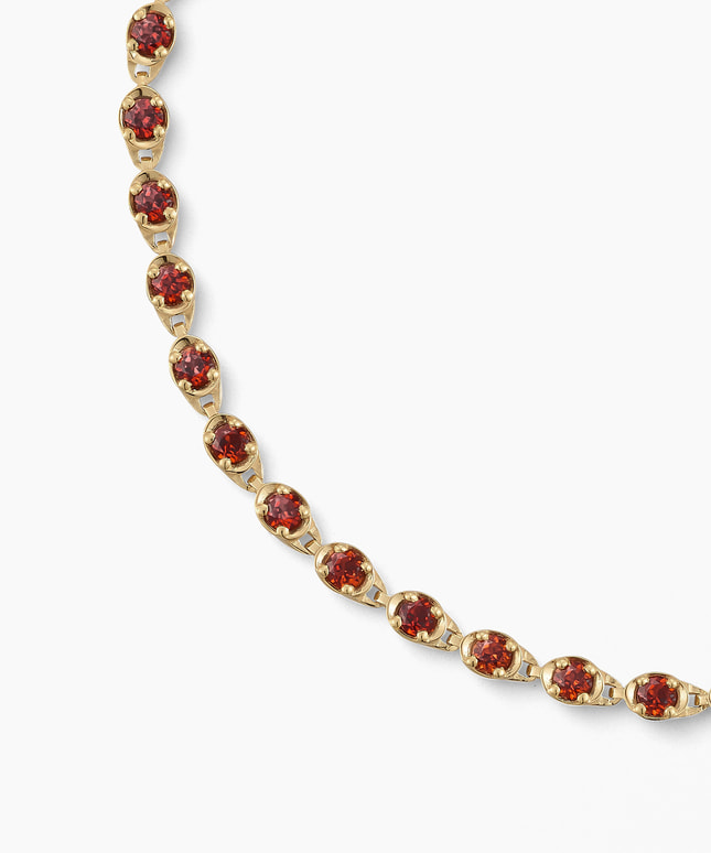 深みのある赤が印象的なガーネットを連ねたシックなデザイン。