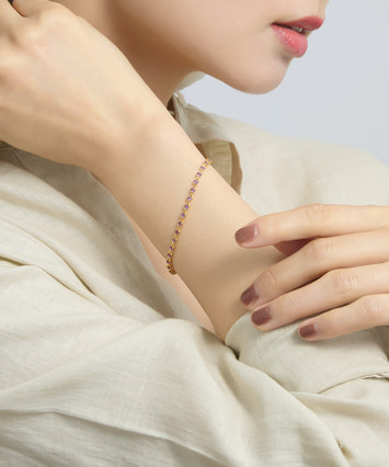 1粒1粒の色彩がリズミカルに連なり、手元にさりげない華やかさを添えます。