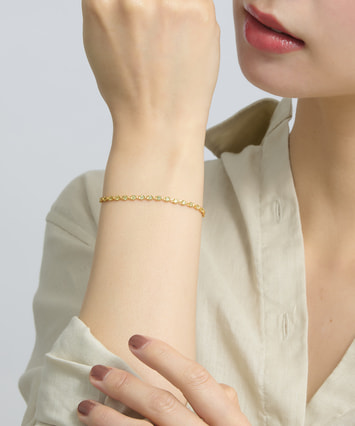 華奢なチェーンとの組み合わせで、抜け感のある仕上がりに。
