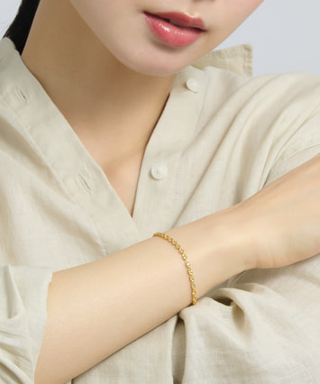 1粒1粒の色彩がリズミカルに連なり、手元にさりげない華やかさを添えます。