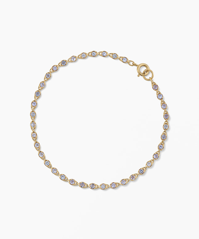 小粒のタンザナイトを等間隔にセッティングし、軽やかなリズム感を表現したデザイン。