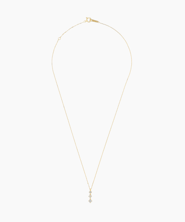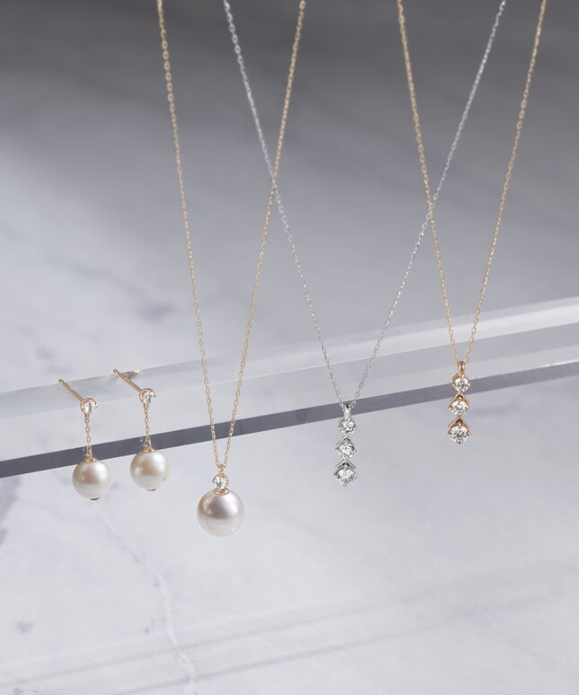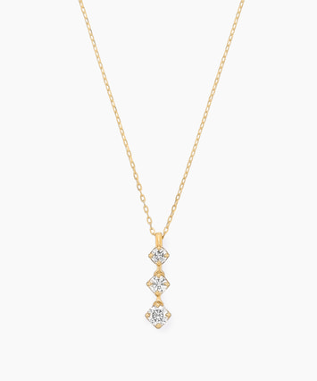 【数量限定/festaria bijou SOPHIA限定】過去・現在・未来を表すスリーストーンのダイヤモンドネックレス。小さい爪がダイヤモンドの輝きを引きたて、デコルテを明るく演出。パーツ同士を繋ぐカンにこだわることで、仕草にあわせたしなやかな揺れ感を実現。ダイヤモンドはSIクラス以上から丁寧にセレクトすることで、上質なきらめきを存分にお楽しみいただけるネックレスに仕上がりました。縦ラインを強調するデザインは、首回りをすっきり見せてくれる効果も。永遠のベーシックデザインだからこそ、長く愛せるクオリティにこだわった特別なアイテムです。■素材違いはこちら →プラチナ※無くなり次第終了。■長さの調節ができるアジャスターはこちら※全国のフェスタリア系列店舗にてクリーニングやアフターメンテナンスを承ります。