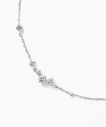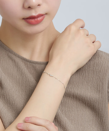 【数量限定・ONLINE SHOP先行発売】<2026 Spring Limited Jewelry> ★先行販売特典でジュエリーボックスプレゼント 2026 Spring Limited Jewelryのラインナップはこちら ■デザインについて フェスタリア20周年を記念して蘇った人気のデザインは、グラスに立ち昇るシャンパンの泡を表現しています。 軽やかに弾ける泡の連なりをイメージし、サイズや配置に変化をつけたダイヤモンドを繊細にセッティング。 1粒1粒のきらめきが引き立つよう、全体のバランスにこだわり仕上げました。 祝福の瞬間や日常にある小さな幸せを、そっと閉じ込めたようなジュエリーです。 ■スタッフのおすすめポイント ・シャンパンの泡を思わせる軽やかなデザインで、手元を上品に演出 ・華奢なチェーンとダイヤモンドのきらめきが、日常使いしやすい一本 ・時計や他のブレスレットとの重ね着けもしやすく、コーディネートの幅が広がります ■カラー・素材の展開 プラチナ素材。 凛とした白い輝きがダイヤモンドの透明感を引き立て、 シックで大人っぽい印象を手元に与えてくれます。 ■長さの調節ができるアジャスターはこちら ※数量限定商品のため、無くなり次第終了となります。 ※全国のフェスタリア系列店舗にてクリーニングやアフターメンテナンスを承ります。