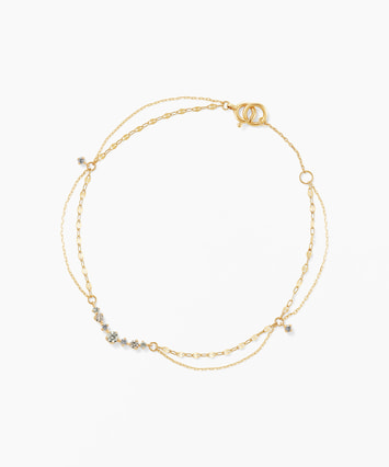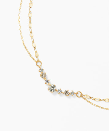 【数量限定・ONLINE SHOP先行発売】<2026 Spring Limited Jewelry> ★先行販売特典でジュエリーボックスプレゼント 2026 Spring Limited Jewelryのラインナップはこちら ■デザインについて フェスタリア20周年を記念して蘇った人気のデザインは、グラスに立ち昇るシャンパンの泡を表現しています。 軽やかに弾ける泡の連なりをイメージし、サイズや配置に変化をつけたダイヤモンドを繊細にセッティング。 1粒1粒の表情が引き立つよう、全体のバランスにこだわり仕上げました。 2本のチェーンが美しく重なり合うレイヤード風デザインは、動くたびに表情を変え、手元に上品なリズムをもたらします。 祝福の瞬間や日常にある小さな幸せを、そっとすくい上げるようなジュエリーです。 ■スタッフのおすすめポイント ・シャンパンの泡を思わせる軽やかなデザインで、手元を華やかに演出 ・華奢ながら存在感があり、シンプルなコーディネートのアクセントに最適 ・お祝いのシーンや記念日のギフトにもおすすめです ■カラー・素材の展開 イエローゴールド素材。 あたたかみのある輝きが、ダイヤモンドのきらめきをより一層引き立てます。 ■長さの調節ができるアジャスターはこちら ※数量限定商品のため、無くなり次第終了となります。 ※全国のフェスタリア系列店舗にてクリーニングやアフターメンテナンスを承ります。