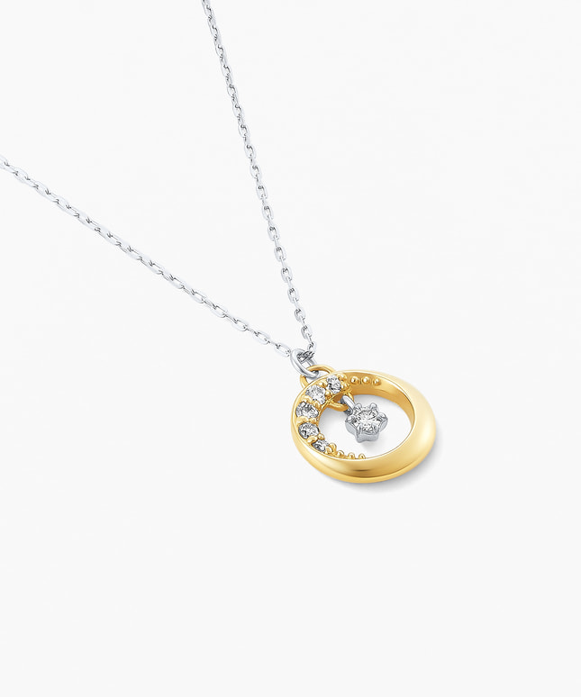 移り変わる月の満ち欠けを大胆なフォルムと繊細なメレダイヤモンドで表現したデザイン。