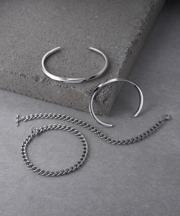 ジェンダーレスなデザインのブレスレットは、男女問わず取り入れやすく、カジュアルな着けこなしが可能なアイテム。留め具までデザインの一部としてなじむ工夫も、フェスタリアらしいこだわりポイントです。プラチナメッキを施した重厚な高級感のある輝きは、お持ちのジュエリーともコーディネートしやすく、滑らかな着け心地を実現。耐久性にも優れ、優美な輝きをより長くお楽しみいただけます。■ペアのアイテムはこちら■同シリーズのアイテムはこちら※変形・変色を防ぐため、水に触れる際や就寝時には外してください。※全国のフェスタリア系列店舗にてクリーニングやアフターメンテナンスを承ります。