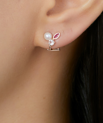 耳元を華やかに演出するイヤリング。淡水パールの上品なつやめきとルビーの鮮やかな赤色が、表情を明るく彩ります。華やかな印象のデザインながら耳たぶから出ない程よいサイズ感なので、オンオフ問わず活躍するアイテムです。※天然石を使用しているため、ストーンの色や柄は一つ一つ異なる場合がございます。※全国のフェスタリア系列店舗にてクリーニングやアフターメンテナンスを承ります。