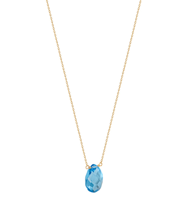 爽やかな青空を連想させるブルートパーズに細かなカットを施し、そのクリア感とうるうるとしたつやめきを楽しんでいただけるネックレス。