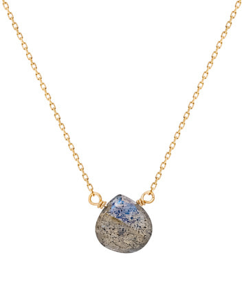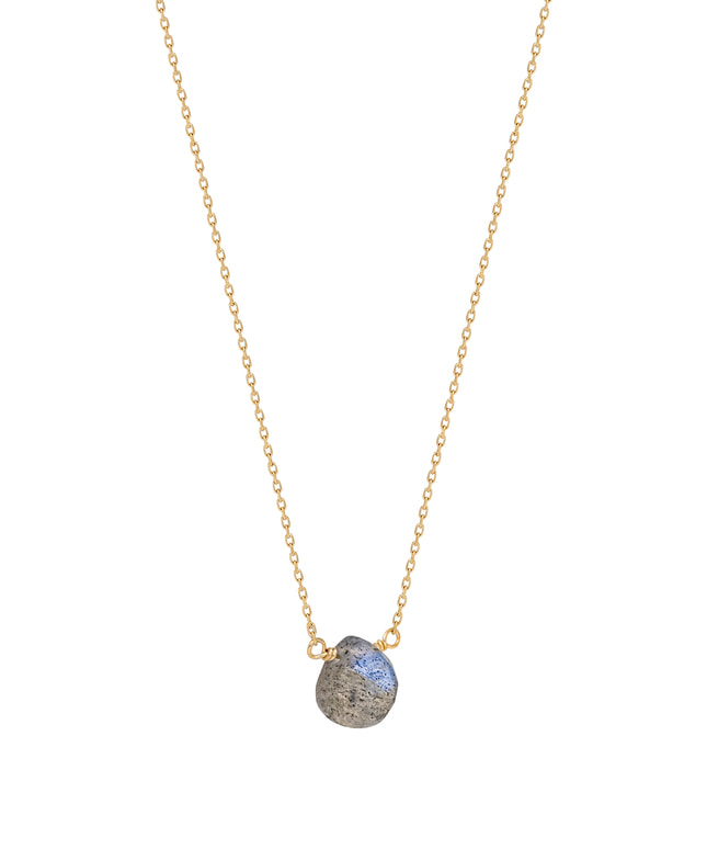光が当たる角度によって複雑に色を変えるラブラドライトをシンプルなネックレスに仕立てました。