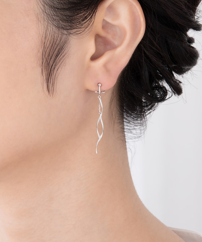 ホワイトゴールドを軽やかにひねった形がエアリーな立体感を生むユニークなデザイン。しゃらしゃらと揺れることで横顔に表情を生み出します。リラックスした雰囲気を上品に纏えるアイテムです。■着用イメージでコーディネートしたアイテムはこちら【2022/04/27 インスタライブご紹介商品】配信のアーカイブはこちらから※全国のフェスタリア系列店舗にてクリーニングやアフターメンテナンスを承ります。
