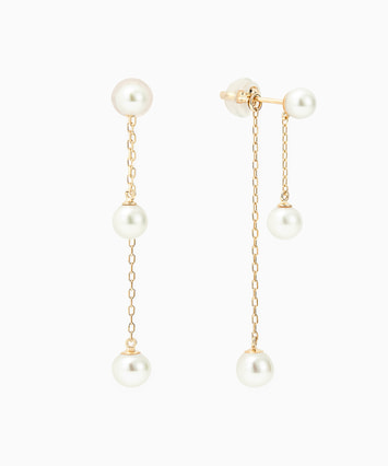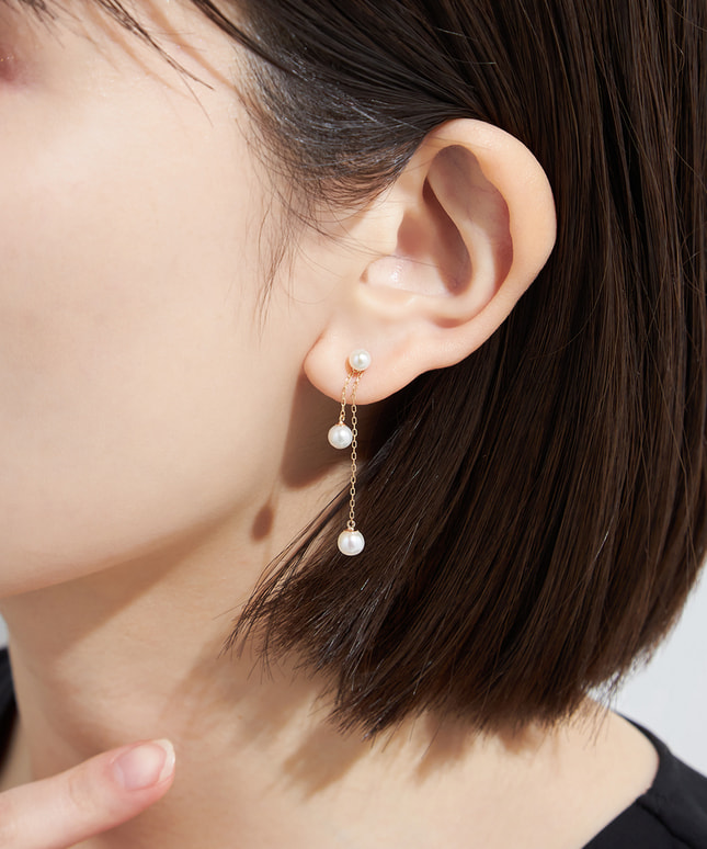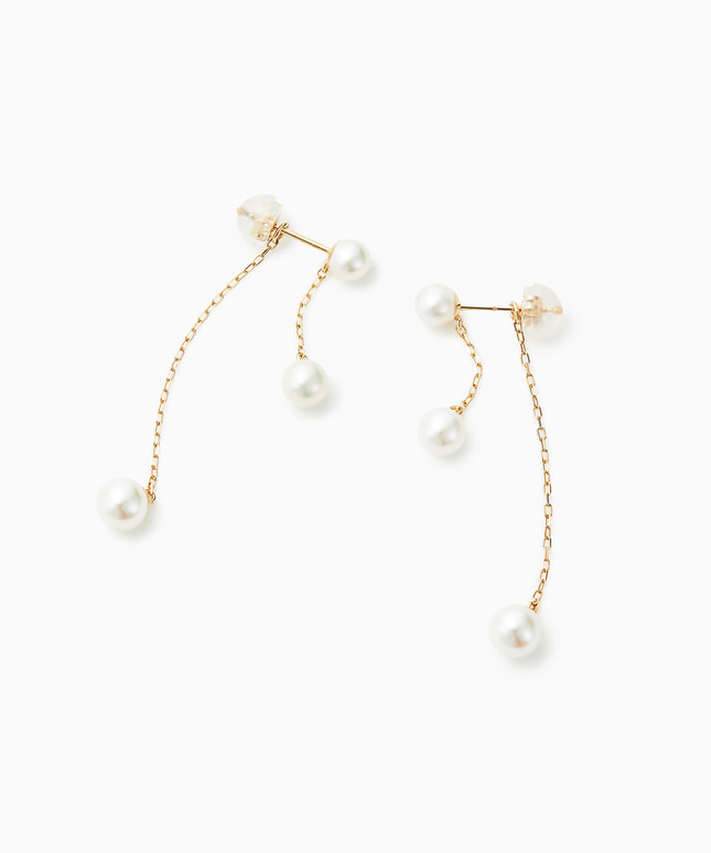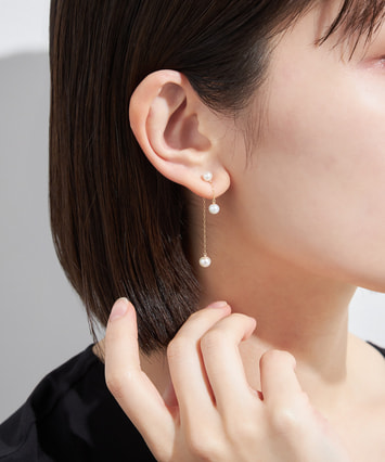 長さの異なるチェーンの先にパールがセッティングされ、上品に揺れるピアス。チェーンが長い方のパーツは取り外しができ、耳たぶの後ろで揺らしたり、取り外して他のピアスのチャームとして着けるなど、Many wayでアレンジを楽しめるアイテムです。※パールジュエリーをご使用の後は、柔らかい布で優しく汚れをふき取り、高温多湿を避けて保管してください。■様々なタイプのキャッチをご用意しております。ラインナップはこちら※全国のフェスタリア系列店舗にてクリーニングやアフターメンテナンスを承ります。