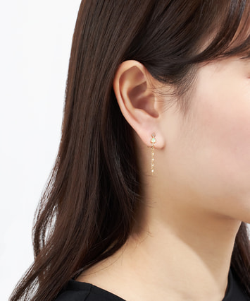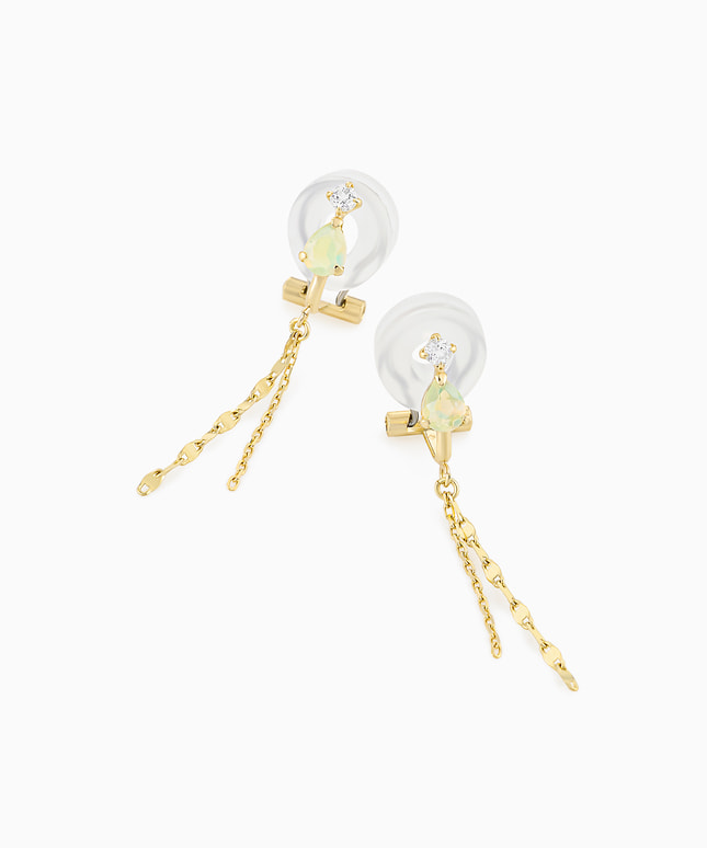 雫型のオパールと、長さの異なる2種類のチェーンが目を引くイヤリング。オパールは見る角度や光によって表情を変える神秘的なニュアンスが魅力。仕草にあわせて揺れるチェーンが光を受けてきらめき、横顔を印象的に彩ります。シリコン付きの留め具で落としにくく痛くなりにくいのも嬉しいポイントです。※天然石を使用しているため、ストーンの色合いは一つ一つ異なる場合がございます。※全国のフェスタリア系列店舗にてクリーニングやアフターメンテナンスを承ります。#イヤリング クリップタイプ #揺れるイヤリング #10月誕生石 #オパール