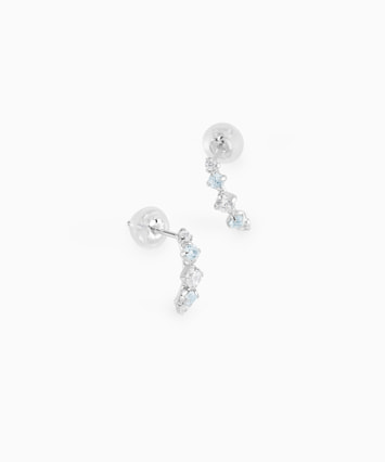 爽やかな色合いのブルートパーズピアス。柔らかなカーブが耳元のラインに沿い、こなれた印象に。交互に配置されたブルートパーズとキュービックジルコニアのきらめきが、横顔を上品に演出します。※天然石を使用しているため、ストーンの色や柄は一つ一つ異なる場合がございます。■様々なタイプのキャッチをご用意しております。ラインナップはこちら※全国のフェスタリア系列店舗にてクリーニングやアフターメンテナンスを承ります。