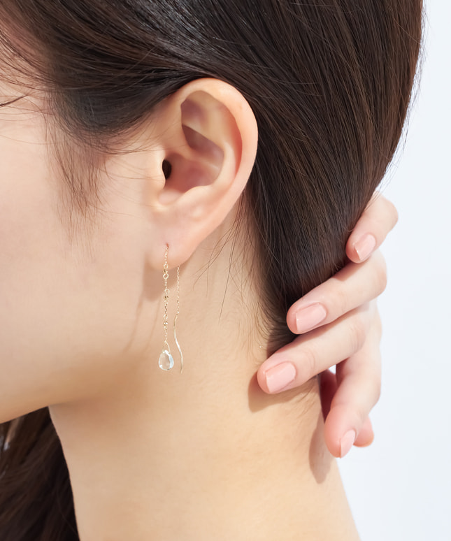 きらめくチェーンにクリアなグリーンアメシストが揺れるピアス。シンプルな中に施された細やかな細工が、横顔をフェミニンに演出。アップスタイルの髪型が増える季節に特におすすめのデザインです。※天然石を使用しているため、ストーンの色や柄は一つ一つ異なる場合がございます。■様々なタイプのキャッチをご用意しております。ラインナップはこちら※全国のフェスタリア系列店舗にてクリーニングやアフターメンテナンスを承ります。#アメリカンピアス #揺れるピアス #グリーンアメシスト