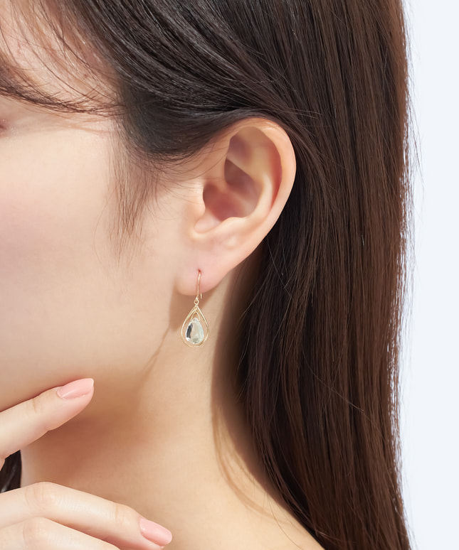 ゴールドのフレームの中でクリアなグリーンアメシストが揺れるフックタイプのピアス。キャンディーのようなカットのストーンは、太陽の光を受けてどんな角度から見てもきらめきます。横顔に爽やかな華やかな彩りを添えるアイテムです。※天然石を使用しているため、ストーンの色や柄は一つ一つ異なる場合がございます。■様々なタイプのキャッチをご用意しております。ラインナップはこちら※全国のフェスタリア系列店舗にてクリーニングやアフターメンテナンスを承ります。#揺れるピアス #フックピアス #2月誕生石 アメシスト #グリーンアメシスト #ピアス 2万円予算