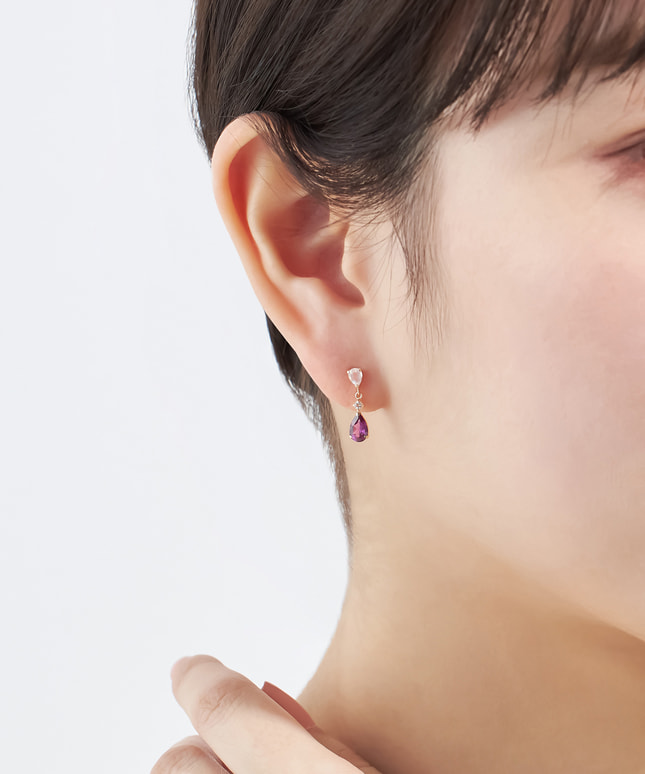 ロードライトガーネットとローズクォーツのカラーリングがフェミニンな雰囲気のピアス。上品な色合いで、お顔まわりに優しくエレガントな印象を与えます。小ぶりなサイズ感のため、身に着けるシーンを選ばず日々活躍してくれるアイテムです。 ※天然石を使用しているため、ストーンの色や柄は一つ一つ異なる場合がございます。■様々なタイプのキャッチをご用意しております。ラインナップはこちら※全国のフェスタリア系列店舗にてクリーニングやアフターメンテナンスを承ります。