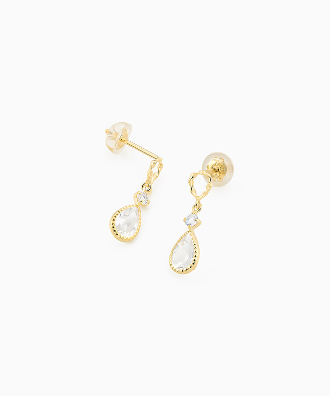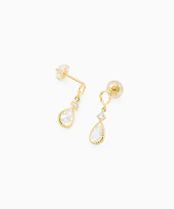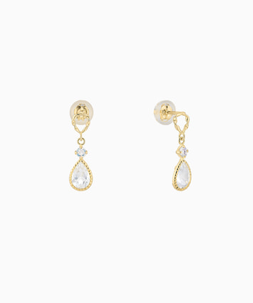 トパーズとブルームーンストーンのカラーリングがさわやかな雰囲気のピアス。抜け感を感じるデザインで、お顔まわりを軽やかに彩ります。小ぶりなサイズ感のため、身に着けるシーンを選ばず日々活躍してくれるアイテムです。 ※天然石を使用しているため、ストーンの色や柄は一つ一つ異なる場合がございます。■様々なタイプのキャッチをご用意しております。ラインナップはこちら※全国のフェスタリア系列店舗にてクリーニングやアフターメンテナンスを承ります。