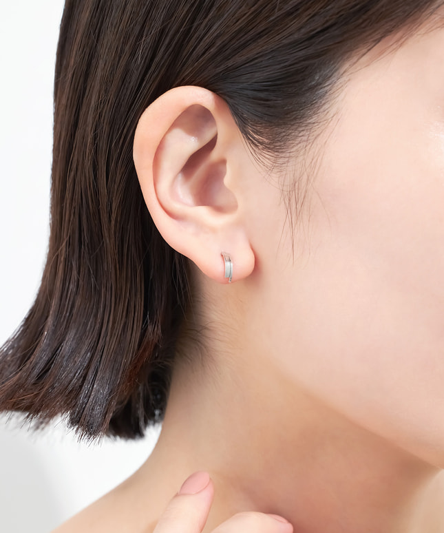 モダンなテイストのピアス。シンプルな中にもこだわりが光るスタイリッシュなデザイン。さりげなくカーブを描くフォルムは、横顔にも美しい印象を与えてくれます。着けるシーンを選ばず、どんなコーディネートにも馴染むピアスです。※全国のフェスタリア系列店舗にてクリーニングやアフターメンテナンスを承ります。