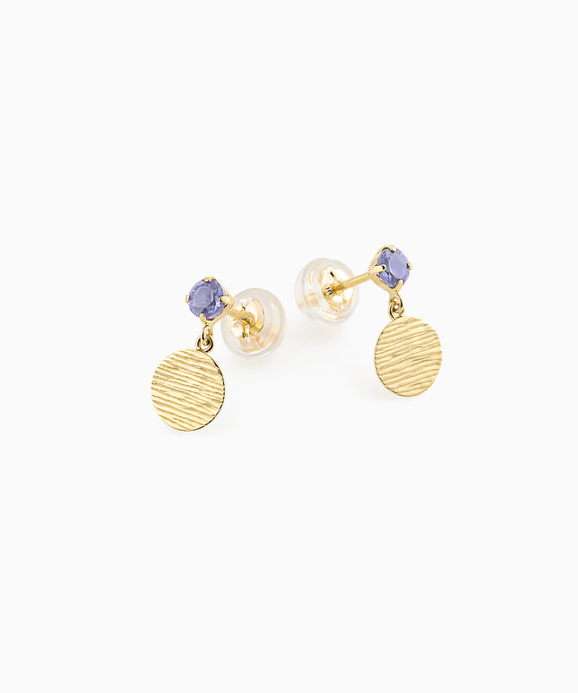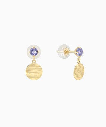 神秘的な青紫色のアイオライトの下でゴールドのパーツが揺れるスタッドピアス。繊細なカッティングを施したゴールドのプレートが仕草にあわせて揺れ、光を受けてきらきらと輝きます。青みのカラーストーンとゴールドの輝きのコントラストが印象的なデザインです。※天然石を使用しているため、ストーンの色合いは一つ一つ異なる場合がございます。■様々なタイプのキャッチをご用意しております。ラインナップはこちら※全国のフェスタリア系列店舗にてクリーニングやアフターメンテナンスを承ります。#アイオライト #揺れるピアス #ピアス 1万円台