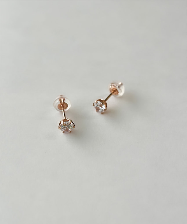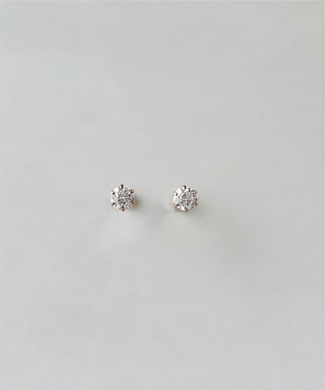 繊細な爪で留めたカットの美しいキュービックジルコニアのスタッドピアス。