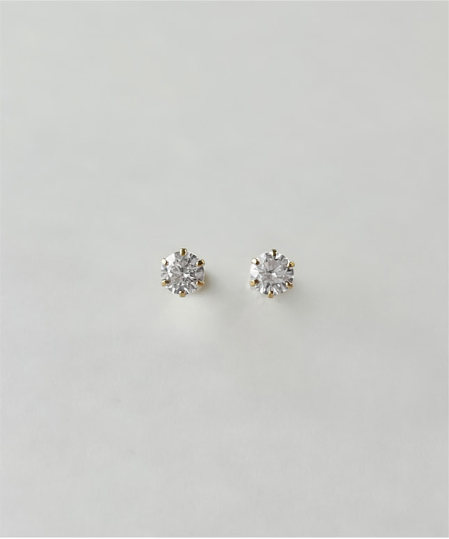 繊細な爪で留めたカットの美しいキュービックジルコニアのスタッドピアス。