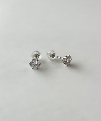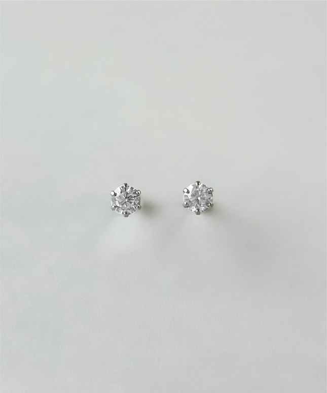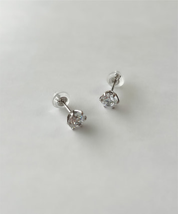 繊細な爪で留めたカットの美しいキュービックジルコニアのスタッドピアス。