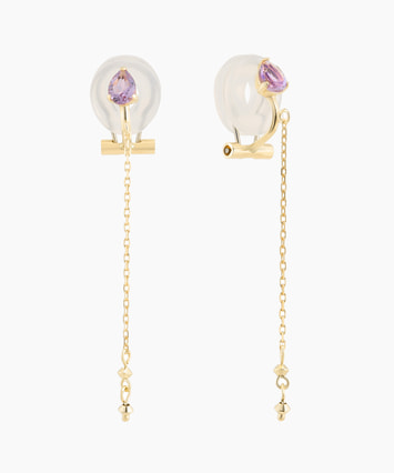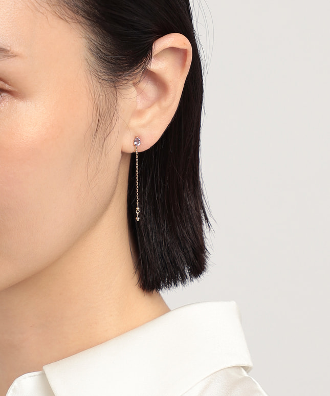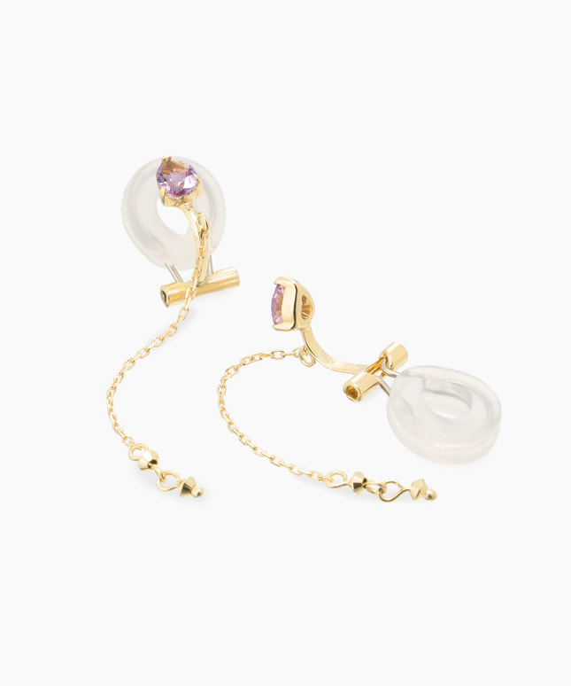 上品でフェミニンな輝きが美しいアメシスト。仕草にあわせて揺れる度、顔まわりに華やかさをプラス。シンプルなデザインながら、アメシストの味わい深いカラーが上品なムードを放ちます。圧迫感を感じにくいシリコンパーツのため、デイリーに身に着けやすいのも嬉しいポイント。カジュアルからオフィスまで、どんなシーンでもお楽しみいただけます。※天然石を使用しているため、ストーンの色合いは一つ一つ異なる場合がございます。※全国のフェスタリア系列店舗にてクリーニングやアフターメンテナンスを承ります。