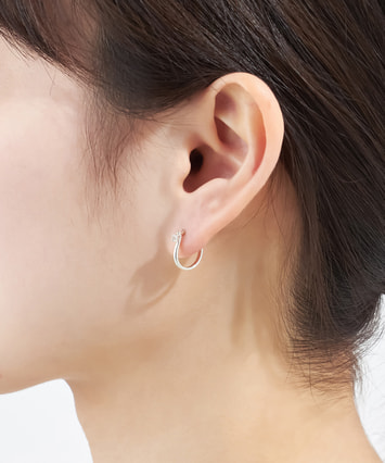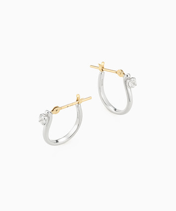 一粒あしらったキュービックジルコニアがさりげなくアクセントを与えてくれるシンプルなフープピアス。柔らかいカーブデザインはお顔周りにやさしい印象に。光を受けたキュービックジルコニアがしぐさに合わせてきらめきを放ち、さわやかさを演出。イエローゴールドとのコンビカラーで、お持ちのジュエリーとのコーディネートがしやすく、ユニセックスでお使いいただけます。■フープピアスのラインナップはこちら■様々なタイプのキャッチをご用意しております。ラインナップはこちら※天然石を使用しているため、ストーンの色や柄は一つ一つ異なる場合がございます。※全国のフェスタリア系列店舗にてクリーニングやアフターメンテナンスを承ります。