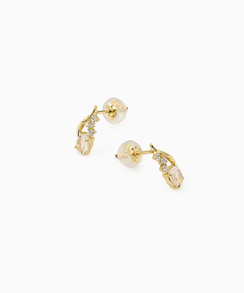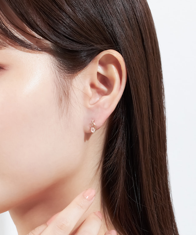 しずくのような柔らかな曲線を描くティアモチーフのピアス。淡く柔らかなピンク色のローズクォーツと、きらめくホワイトトパーズをあしらいました。フェミニンでエレガントな耳元を演出し上品な印象を与えてくれます。■様々なタイプのキャッチをご用意しております。ラインナップはこちら※天然石を使用しているため、ストーンの色や柄は一つ一つ異なる場合がございます。※全国のフェスタリア系列店舗にてクリーニングやアフターメンテナンスを承りまshす。