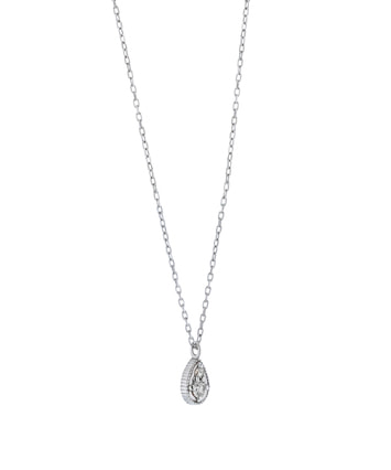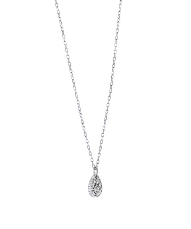 正統派なデザインが美しいフラットな仕上がりのネックレス。雫モチーフをミル打ちで縁取った上品なデザインは、シーンを選ばず身につけられるジュエリーです。ホワイトゴールドの上品な色合いとダイヤモンドが放つきらめきが、胸元にさりげない輝きをプラスします。■長さの調節ができるアジャスターはこちら※全国のフェスタリア系列店舗にてクリーニングやアフターメンテナンスを承ります。#雫モチーフ ネックレス #ダイヤモンドネックレス ホワイトゴールド