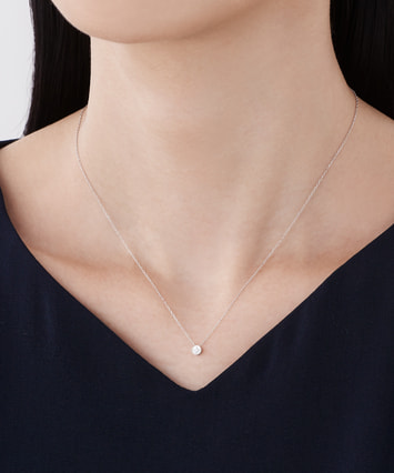 さりげない輝きがデコルテを彩る、シンプルなデザインの1粒ダイヤモンドネックレス。ホワイトゴールドの上品な色合いが優しい印象に見せてくれます。どんなコーディネートにも活躍し、シーンや年代を問わず長く使える万能アイテムです。■長さの調節ができるアジャスターはこちら※全国のフェスタリア系列店舗にてクリーニングやアフターメンテナンスを承ります。