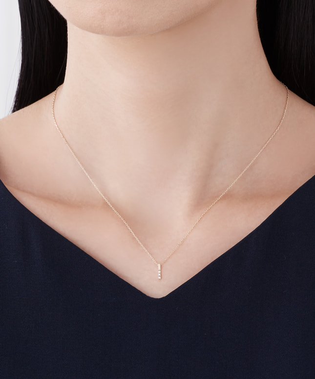 すっきりとした縦ラインが印象的なネックレス。華やかなゴールドの光沢とさりげなく輝くダイヤモンドがデコルテを彩ります。シンプルなデザインはオフィスシーンでも使いやすく、大切な方へのギフトとしてもおすすめのジュエリーです。■長さの調節ができるアジャスターはこちら※全国のフェスタリア系列店舗にてクリーニングやアフターメンテナンスを承ります。