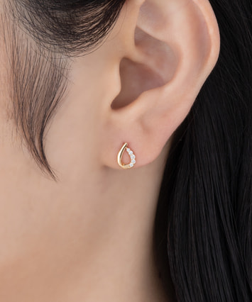 ゴールドで描いたつややかな雫のラインにダイヤモンドをセッティングしたピアス。普段のスタイリングに合わせやすいデザインとボリューム感が魅力です。ダイヤモンドの繊細な輝きが、横顔を明るく彩ります。■様々なタイプのキャッチをご用意しております。ラインナップはこちら※全国のフェスタリア系列店舗にてクリーニングやアフターメンテナンスを承ります。