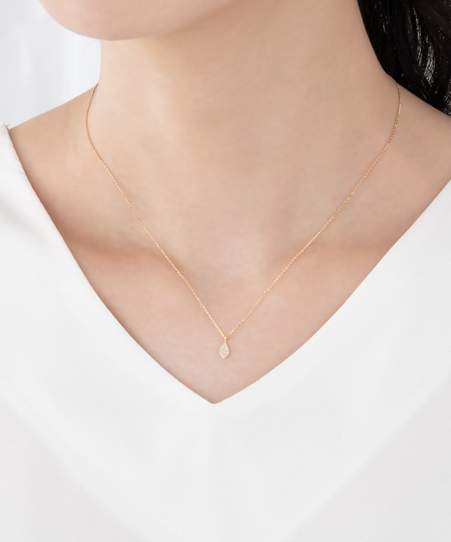 ensemble アンサンブルいつも一緒で、自分の一部のように身につけることができるお守りジュエリー、をコンセプトに仕立てられたシリーズ。素肌によくなじむ華奢ジュエリーは、さりげない、だけどいつものスタイリングに繊細な輝きを添える、大人の女性の定番アイテム。ゴールドの細いラインを効かせ描かれたすっきりとした雫モチーフは、甘くなりすぎず、クールになりすぎず、こなれた雰囲気に。透明感のあるダイヤモンドをセッティングすることでデコルテを明るく彩ります。また背面は、地金を裏抜きせずに艶やかに磨き上げた贅沢な作りのため、シーンや装いに合わせてリバーシブルでお使いいただけるところも魅力のひとつ。■長さの調節ができるアジャスターはこちら※全国のフェスタリア系列店舗にてクリーニングやアフターメンテナンスを承ります。