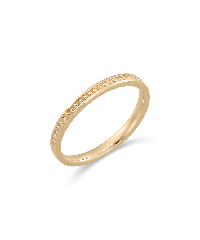 Mon amie モナミフランス語で心の通じ合う、信頼する「親友」という意味を持つ「Mon amie モナミ」シリーズは、気心の知れた親友のように、気取らず日常のコーディネートのアクセントになるよう、ゴールドのみで仕立てたリングです。センターラインにあしらわれたミルグレインがクラシカルな印象をあたえるリングは、1本で着けると繊細な手元を演出し、重ね着けた場合は主役を引き立てる器用さを持ったジュエリーです。リングの内側を滑らかに磨くことで指通りがよく着け心地の良さも嬉しいポイント。ミルグレインはゴールドの珠が連なることから、「幸せが続く」などの意味を持ち、大切な方への贈り物としてもおすすめです。