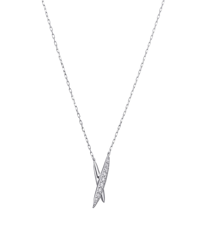 ダイヤモンドとプラチナのラインが交差するシャープなデザインはスタイリッシュで、モダンな印象に。ほのかな丸みを帯びた優美さの中にピリッと感じる辛口さがエッセンスになるネックレスは、装飾を抑えたシンプルさでプラチナの素材感を際立たせる作りになっています。透明感あふれるダイヤモンドを10石セッティングしているので、ご結婚記念日などアニバーサリーの大切な贈り物としてもおすすめ。また背面には輝きを抑えたつや消しのラインと、光を受けてきらめく鏡面仕上げを施し、シーンや装いに合わせてリバーシブルでもお使いいただける嬉しい仕様に。気品に満ちあふれ、洗練された高級感が日々の装いに彩りをプラスするジュエリーです。■長さの調節ができるアジャスターはこちら※全国のフェスタリア系列店舗にてクリーニングやアフターメンテナンスを承ります。