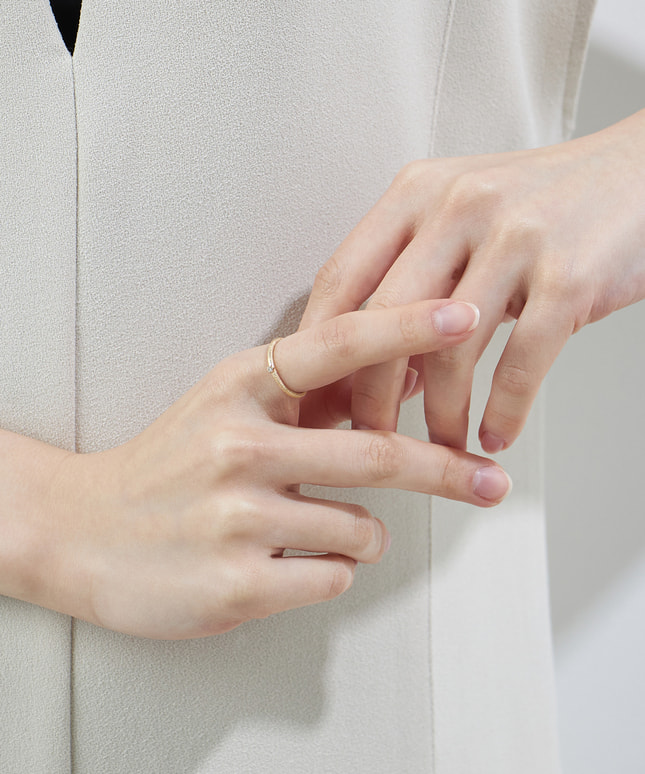 誕生日に、記念日に…さまざまなシーンで想いを伝える花束の贈り物。贈る花の本数にも意味があり、素敵なメッセージを込めることができます。そんな花束のように、大切な方へのギフトにぴったりのシリーズです。粗めのつや消し加工を施したゴールドの風合いが印象的なリング。シンプルながら個性が光るデザインで、1本で着けても他のリングと重ね着けしても、こなれた存在感を放ちます。