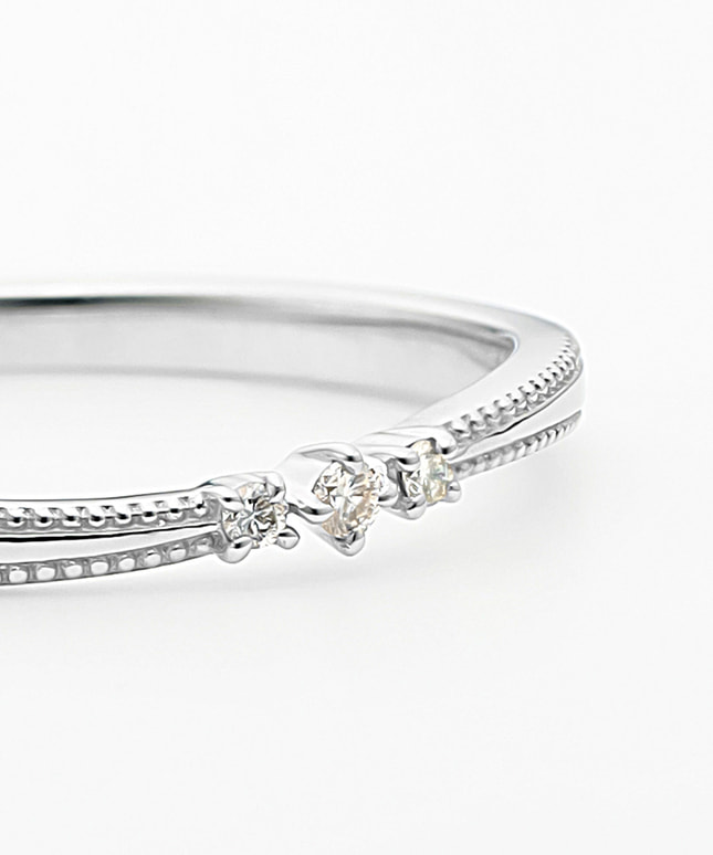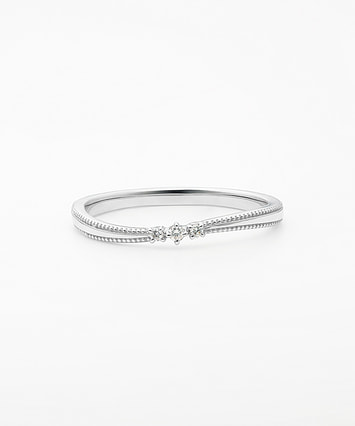 誕生日に、記念日に…さまざまなシーンで想いを伝える花束の贈り物。贈る花の本数にも意味があり、素敵なメッセージを込めることができます。そんな花束のように、大切な方へのギフトにぴったりのシリーズです。身に着ける方の幸せを願うミルグレインが施されたリング。指をきれいに見せるS字のラインに3石のダイヤモンドが輝きを添え、手元を上品かつ華やかに演出します。