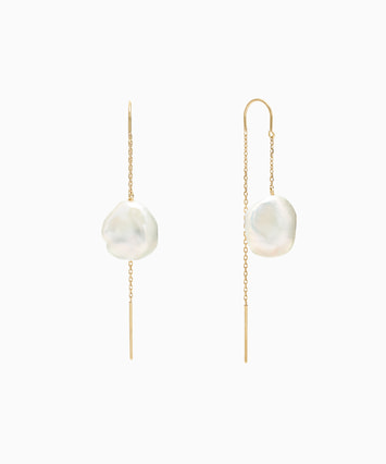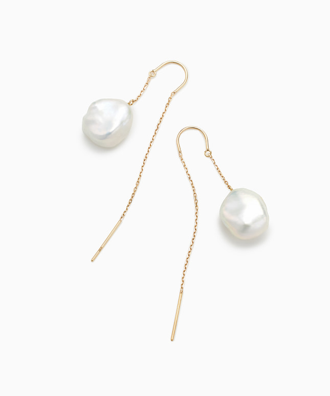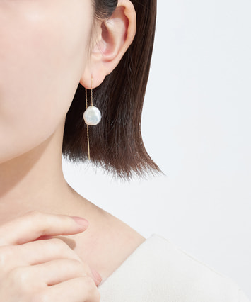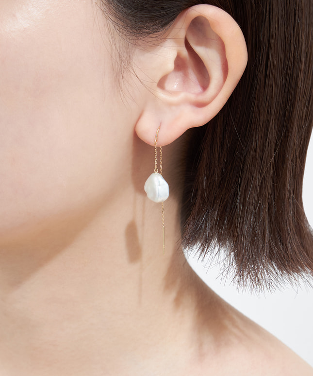 この世にふたつと同じ形がないバロックパールをメインとしたエレガントなシリーズ。自然のいたずらでできた個性的でなめらかなフォルムが愛らしく、装うほどに愛着を感じることができるピアスです。一般的なラウンド型のパールよりもカジュアルな印象になり、より普段使いしやすいことも嬉しいポイント。イエローゴールドのチェーンとともに揺れていろいろな表情を見せるパールが、横顔を印象的に彩ります。■同シリーズのアイテムはこちら※バロックパールはひとつひとつの形が異なるため、左右同じ形をご準備することができかねます。予めご了承ください。※パールジュエリーをご使用の後は、柔らかい布で優しく汚れをふき取り、高温多湿を避けて保管してください。■様々なタイプのキャッチをご用意しております。ラインナップはこちら※全国のフェスタリア系列店舗にてクリーニングやアフターメンテナンスを承ります。#アメリカンピアス #揺れるピアス #淡水パール #バロックパール