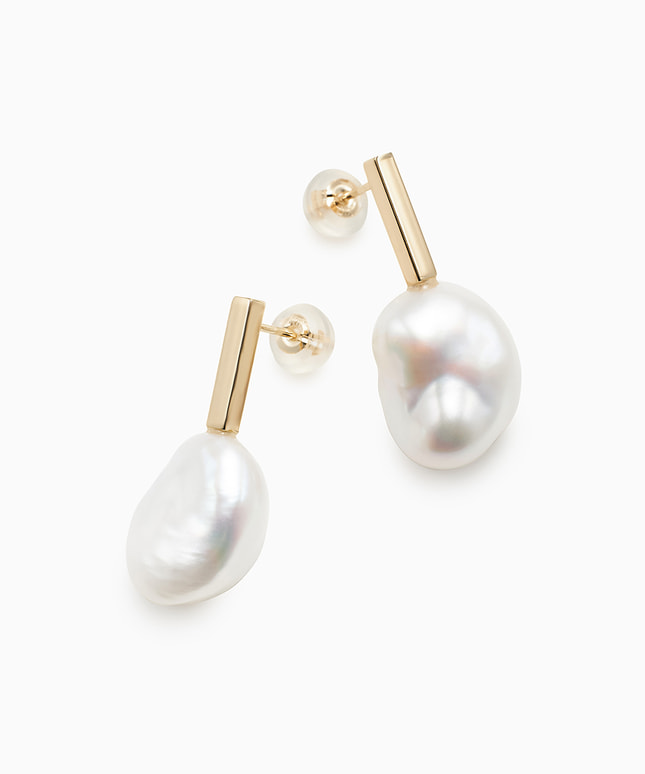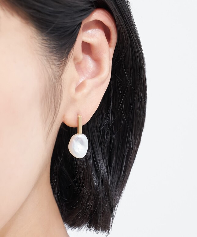 この世にふたつと同じ形がないバロックパールをメインとしたシリーズ。自然が生み出す個性的でなめらかなフォルムに、装うほどに愛着を感じることができるピアスです。バロックパールの有機的なつやめきとゴールドの直線的な輝きの対比が目を引くデザインは、上品でありながら遊び心もあり、フォーマルなシーンだけでなくカジュアルな装いのアクセントにもぴったり。いつものスタイリングにプラスするだけで、クラスアップを叶えます。■同シリーズのアイテムはこちら※バロックパールはひとつひとつの形が異なるため、左右同じ形をご準備することができかねます。予めご了承ください。※パールジュエリーをご使用の後は、柔らかい布で優しく汚れをふき取り、高温多湿を避けて保管してください。■様々なタイプのキャッチをご用意しております。ラインナップはこちら※全国のフェスタリア系列店舗にてクリーニングやアフターメンテナンスを承ります。