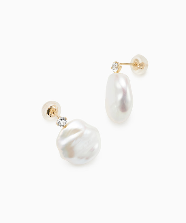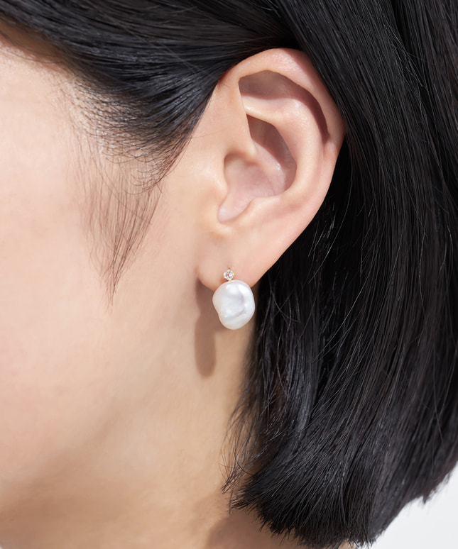 この世にふたつと同じ形がないバロックパールをメインとしたシリーズ。自然が生み出す個性的でなめらかなフォルムに、装うほどに愛着を感じることができるピアスです。有機的につやめくバロックパールの上に透明感のあるホワイトトパーズがさりげなくきらめくデザインは、フェミニンなコーディネートのアクセントにぴったり。フォーマルなシーンだけでなく、いつものスタイリングにプラスすることでクラスアップを叶えます。■同シリーズのアイテムはこちら※バロックパールはひとつひとつの形が異なるため、左右同じ形をご準備することができかねます。予めご了承ください。※パールジュエリーをご使用の後は、柔らかい布で優しく汚れをふき取り、高温多湿を避けて保管してください。■様々なタイプのキャッチをご用意しております。ラインナップはこちら※全国のフェスタリア系列店舗にてクリーニングやアフターメンテナンスを承ります。