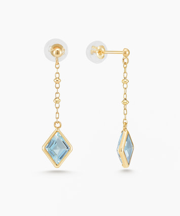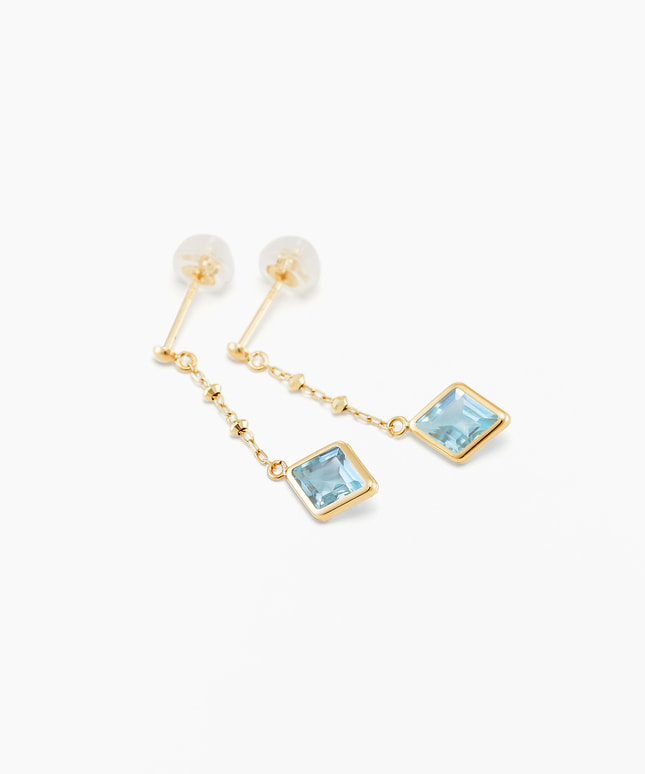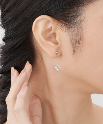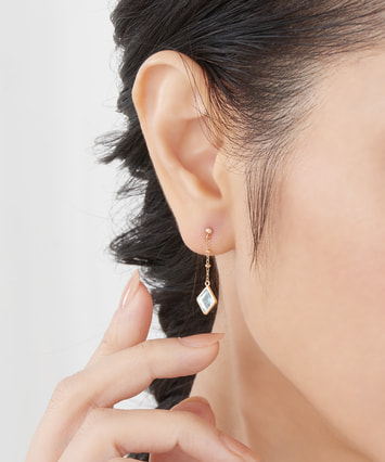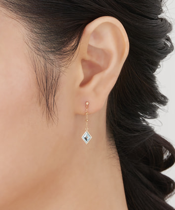 カラーストーンピアス軽やかに風に吹かれて揺れるピアスは人々の視線を惹きつけ、涼やかなブルートパーズが横顔を印象的に彩ります。※全国のフェスタリア系列店舗にてクリーニングやアフターメンテナンスを承ります。