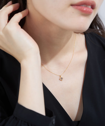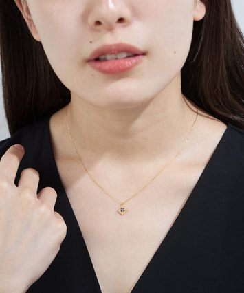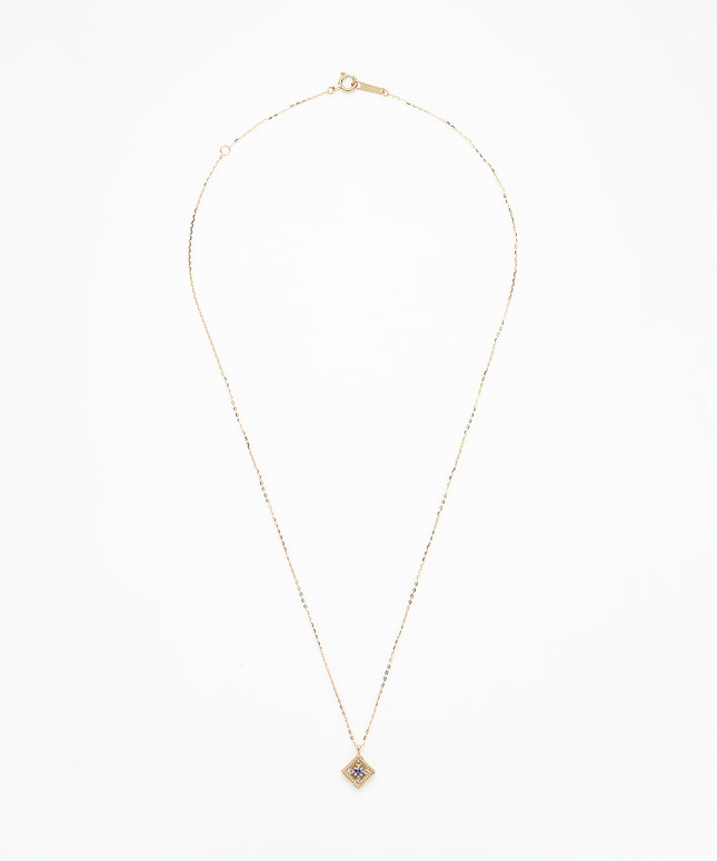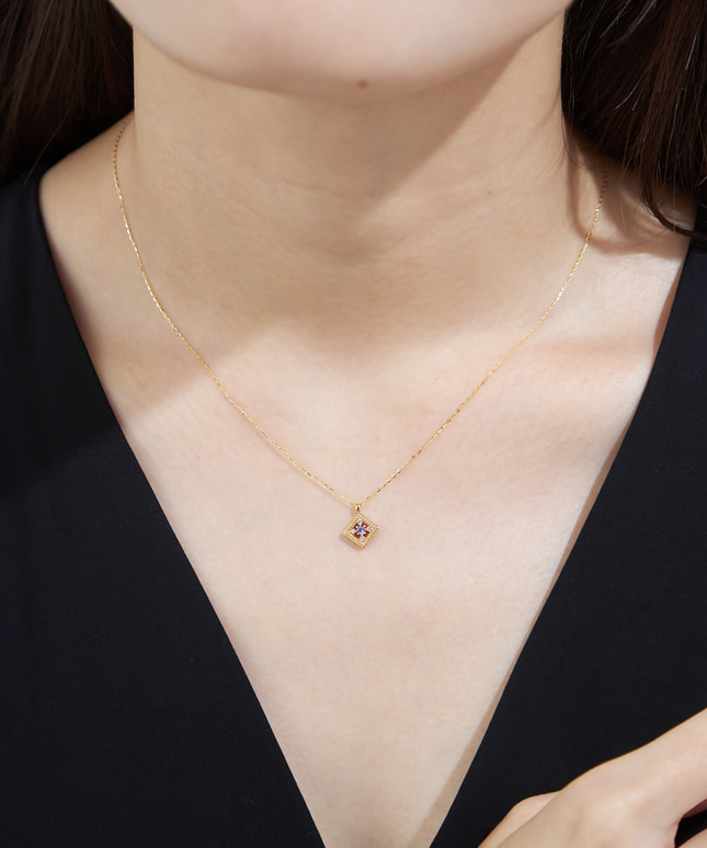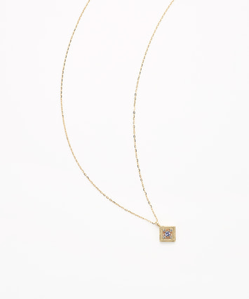 印象的なスクエアフォルムに添えられたタンザナイトが目を惹くネックレスは、日々の装いにアクセントをプラスします。