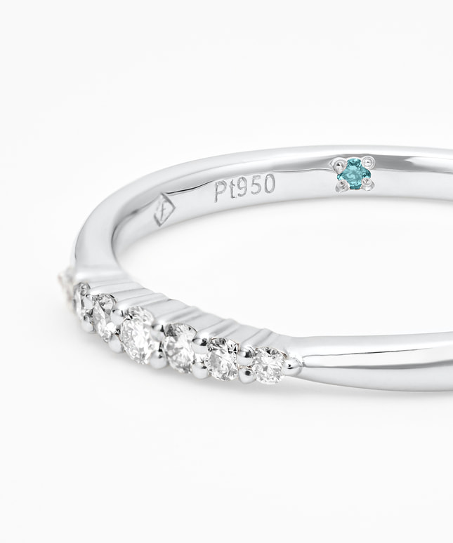 またフェリシアの青い花をイメージし、リングの内側には「永遠の幸せ」を表すブルーダイヤモンドをそっとセッティング。