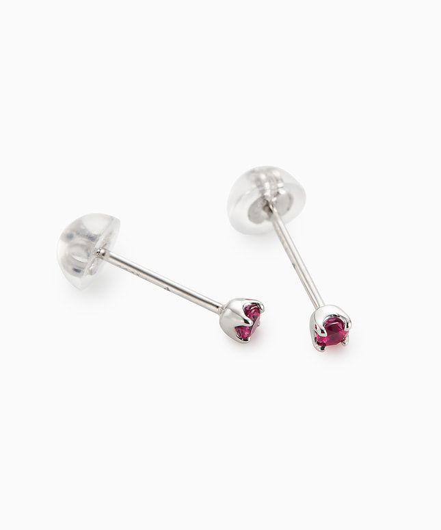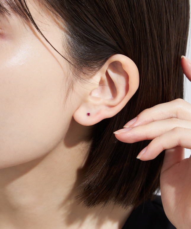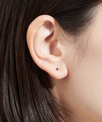 Birth Stone 誕生石ピアスシンプルな1粒タイプのピアスは、ピアスホールを開けたばかりのファーストピアスとしてもおすすめ。通常のピアスポストよりも長い11.5mmポストを使用しているので、耳たぶに厚みのある方も安心です。情熱的な赤色が印象的なルビーは、7月の誕生石であるとともに、女性のお守り石とも言われます。血液の赤を思わせる色合いから生命の力を持つとされ、前へ進む情熱や勇気をサポートしてくれると考えられているルビー。恋人や家族への贈り物にもぴったりの宝石です。ルビーの石言葉:「情熱」「愛情」「威厳」「勇気」■同シリーズのアイテムはこちら※天然石を使用しているため、ストーンの色合いは一つ一つ異なる場合がございます。■様々なタイプのキャッチをご用意しております。ラインナップはこちら※全国のフェスタリア系列店舗にてクリーニングやアフターメンテナンスを承ります。