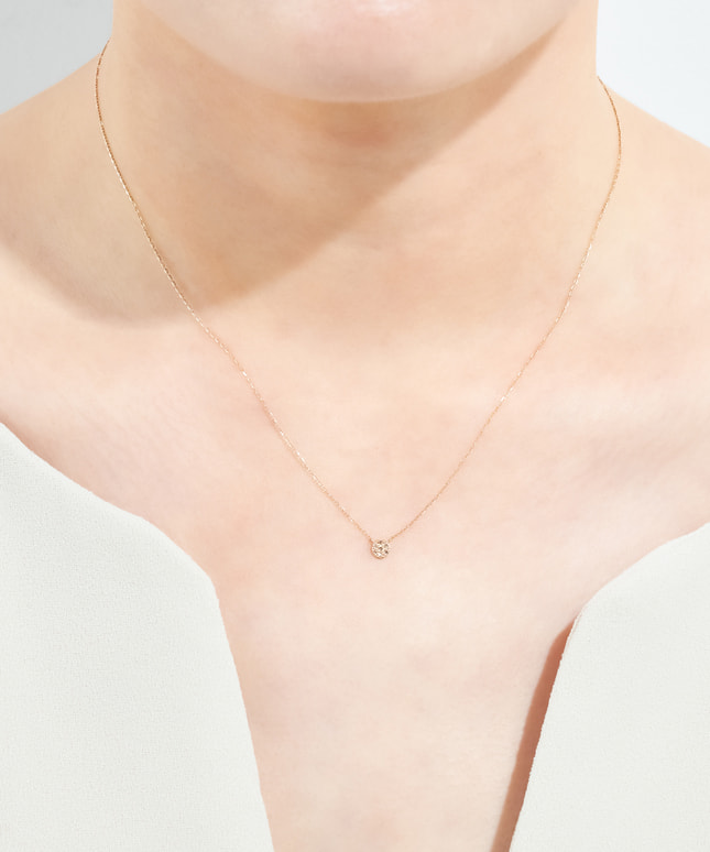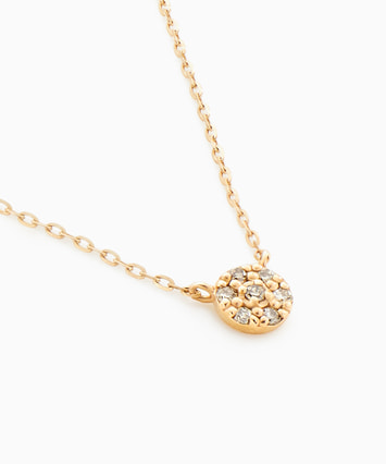 サークルのフォルムに敷き詰められたダイヤモンドが繊細な輝きを放つネックレス。